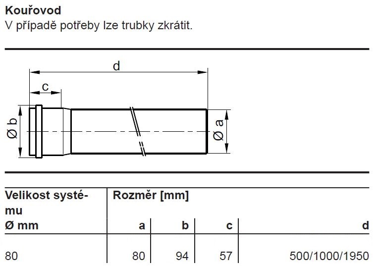 Viessmann PPs trubka 80 1 m 7783228 + ČR záruční list