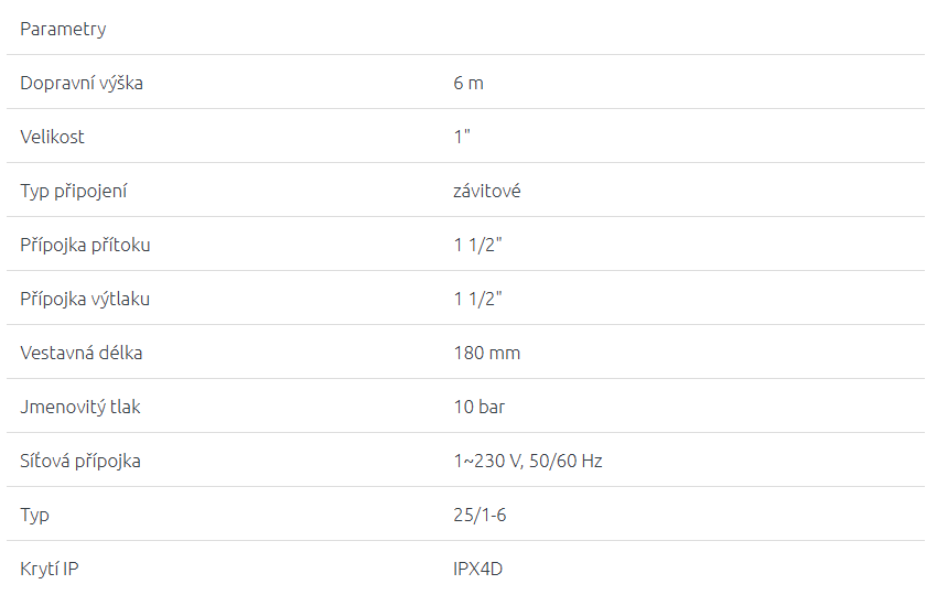 Toto oběhové čerpadlo je vhodné jen pro pitnou vodu.