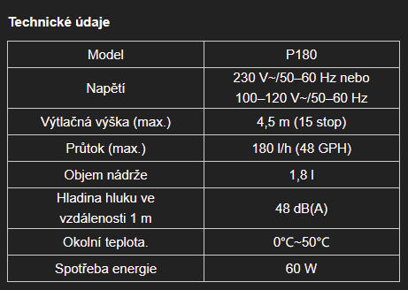 Obecné nádržové čerpadlo P180 dokáže odvádět kondenzát z většiny klimatizačních a chladicích zařízení a pokrývá výtlačnou výšku pod 4,5 metru. Vhodné pro zařízení s chladicím výkonem pod 300 000 BTU/hod.