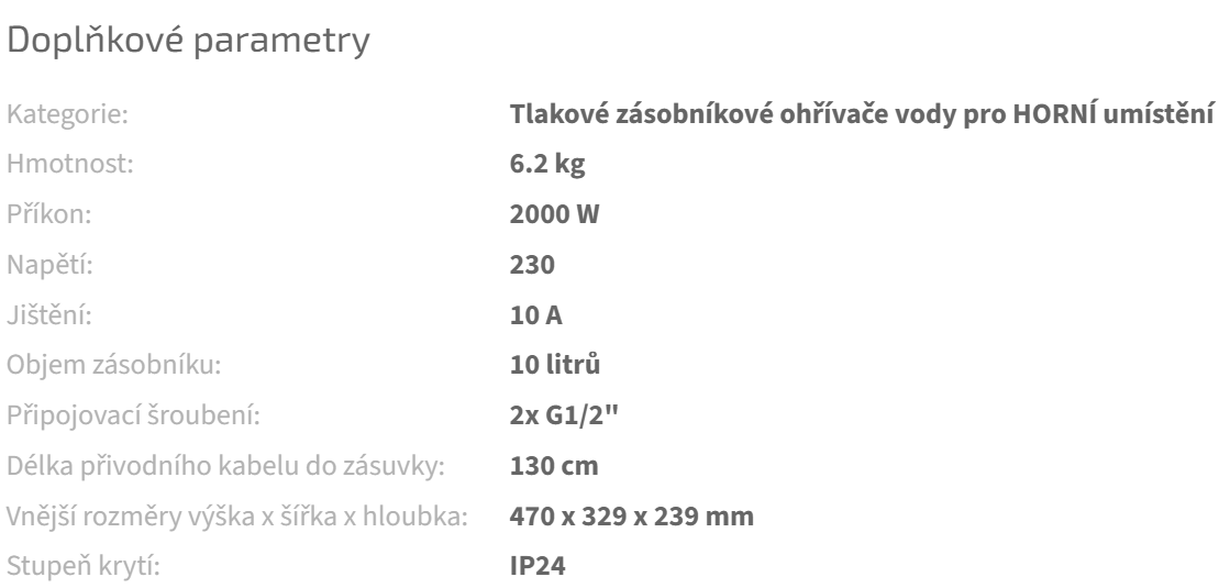 Tento zásobníkový elektrický ohřívač o objemu 10 litrů je určen pro přípravu teplé vody v domácnostech, na chatách a různých sociálních zařízeních. Umožňuje instalaci u jednoho nebo u více odběrných míst teplé vody. Jeho konstrukční výhodou je nádoba z nerezu se zapájeným nerezovým trubkovým topným tělesem. Jeho přednost spočívá v tom, že ohřev objemu vody elektrickým proudem se zabezpečuje v neomezeném celodenním časovém rozsahu. Doba ohřevu užitkové vody na teplotu 65 °C je cca 18 minut.