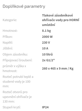 Tento zásobníkový elektrický ohřívač je určen pro přípravu teplé vody v domácnostech, na chatách a různých sociálních zařízeních. Umožňuje instalaci u jednoho nebo více odběrných míst teplé vody. Jeho přednost spočívá v tom, že ohřev objemu vody elektrickým proudem se zabezpečuje v neomezeném celodenním časovém rozsahu. Doba ohřevu užitkové vody na doporučenou teplotu z 15°C na 65°C je cca 48 minut.