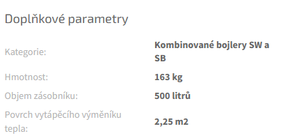 Kombinovaný bojler SW obsahuje jeden výměník umístěný v dolní části nádrže, která je elektrostaticky smaltovaná. Tato moderní technologie umožňuje zajistit přesnou, rovnoměrnou tloušťku ochranného povrchu, která spolu s vyšší elasticitou významně přispívá k významnému zvýšení odolnosti zásobníku proti korozi, prorezivění. Zásobník je vybaven kolekcí vstupů tak, aby bylo možno jej využít v mnoha variantách zapojení instalací. Tento bojler je možno rovněž vybavit elektrickým ohřevem - modulem s autonomním řízením teploty ohřevu.
